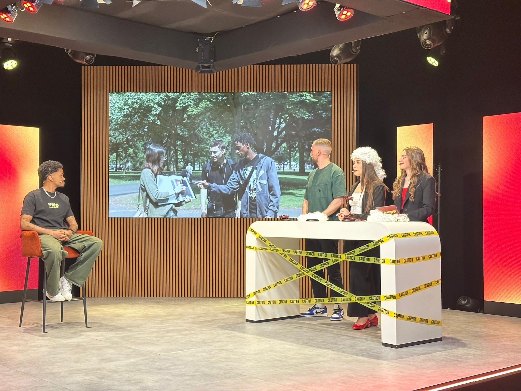 ‘Unlike short films, where you can edit afterwards, live television is a completely different process. All the documents, scripts and cues have to be incredibly detailed because everything happens in real time. We also had to find our own guest. It couldn’t be someone from the university, and we had to build the entire concept around our chosen theme. It was intense but incredibly exciting.’